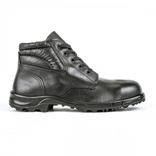 Este botín incorpora una puntera de acero bajo norma, que protege los dedos frente a impactos o caídas de objetos pesados. La suela de PVC inyectado es antideslizante, auto-limpiante y está diseñada con un relieve especial para evitar el quiebre de la planta, ideal para desplazamientos sobre superficies húmedas o irregulares.