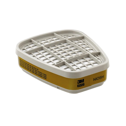 El cartucho 3M™ 6006 está aprobado por NIOSH y cumple con los lineamientos de OSHA para la protección respiratoria. Sin embargo, no debe utilizarse en ambientes que representen un peligro inmediato para la vida o la salud (IDLH). Además, OSHA requiere el uso de gafas a prueba de gas al emplear respiradores de media cara en aplicaciones con formaldehído.