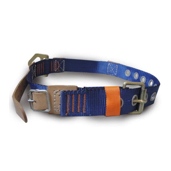 Cuenta con una presilla textil que evita que el sobrante de cinta quede suelto, asegurando una correcta sujeción durante toda la jornada laboral. El cierre frontal con hebilla empernada y ojales de bronce o hierro (según modelo) brinda un cierre firme y confiable, además de permitir una liberación rápida en caso de emergencia.