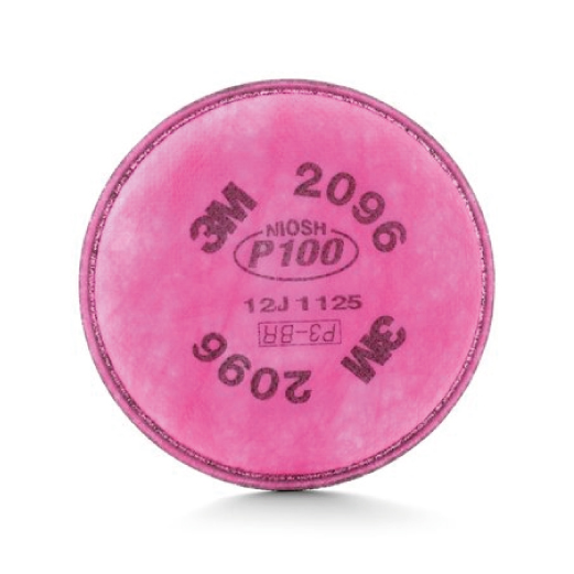Filtro 3M™ 2096 P100 con alta eficiencia del 99.97% contra partículas aceitosas y no aceitosas. Ofrece alivio frente a gases ácidos y es compatible con respiradores 3M™ Series 6000, 7000 y FF-400.
