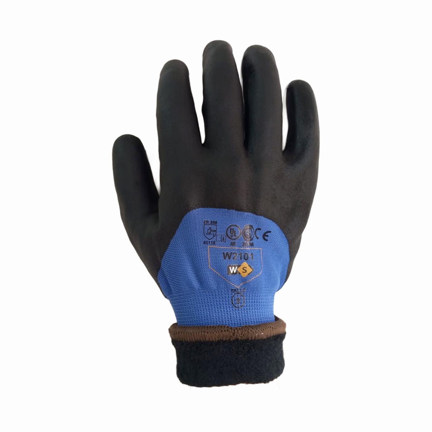 Guante W2101 para frío: interior en acrílico galga 10 que aporta aislamiento térmico y baño 3/4 en nitrilo espumado para un agarre superior en húmedo y buen comportamiento frente a derivados del petróleo. Ideal para manipulación en ambientes fríos.