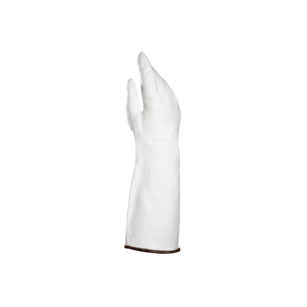 Guantes TempCook 476 de nitrilo blanco-crema con protección térmica hasta 150 °C. Lavables, sin silicona y puño largo de 45 cm. Ideales para industria alimentaria, hostelería y catering.