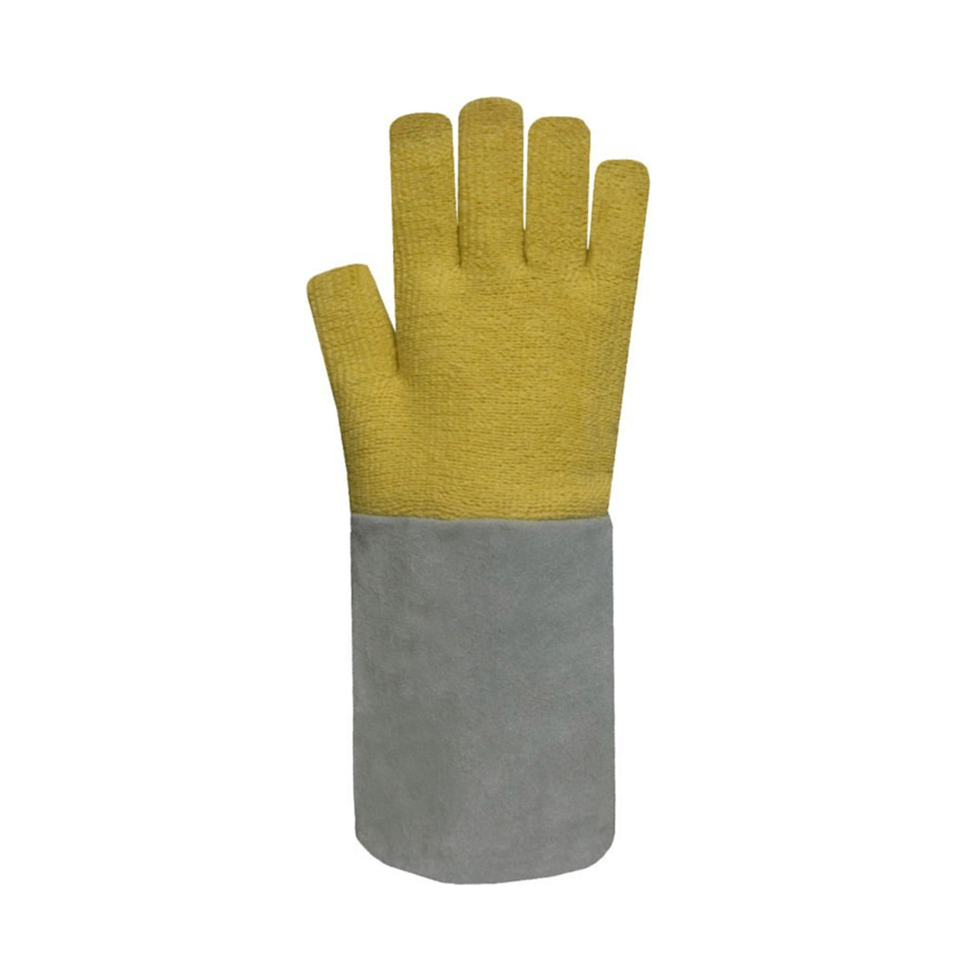 Guantes Terrycloth Kevlar con acolchado de algodón y puño de cuero. Alta resistencia térmica, al corte y a la abrasión. Diseño enterizo, ambidiestro y cómodo para uso industrial exigente.