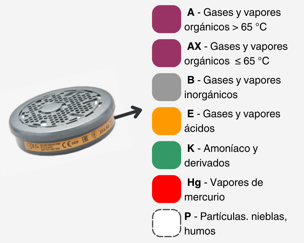 • Protección: Gases y vapores orgánicos con p.e. > 65 °C.
