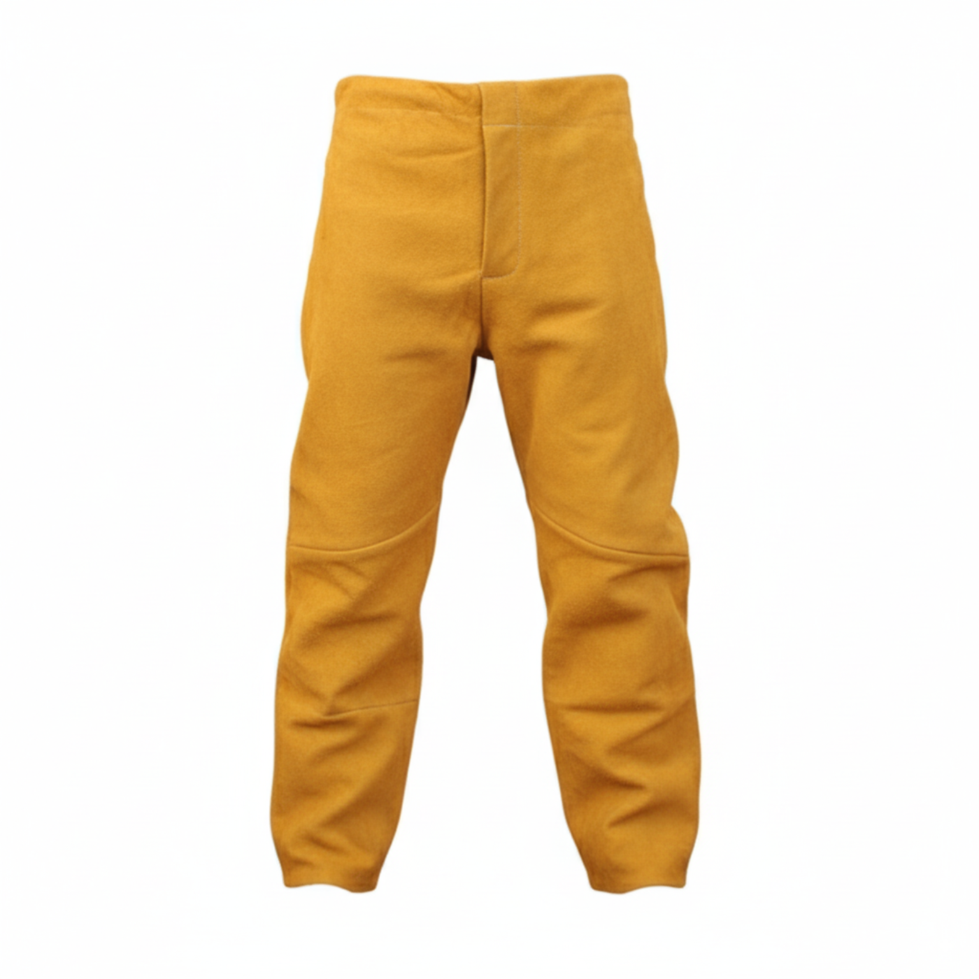 Pantalón de descarne para soldador, confeccionado en cuero amarillo, resistente al calor y las chispas. Con bolsillo práctico y cintura ajustable para máxima protección y comodidad.
