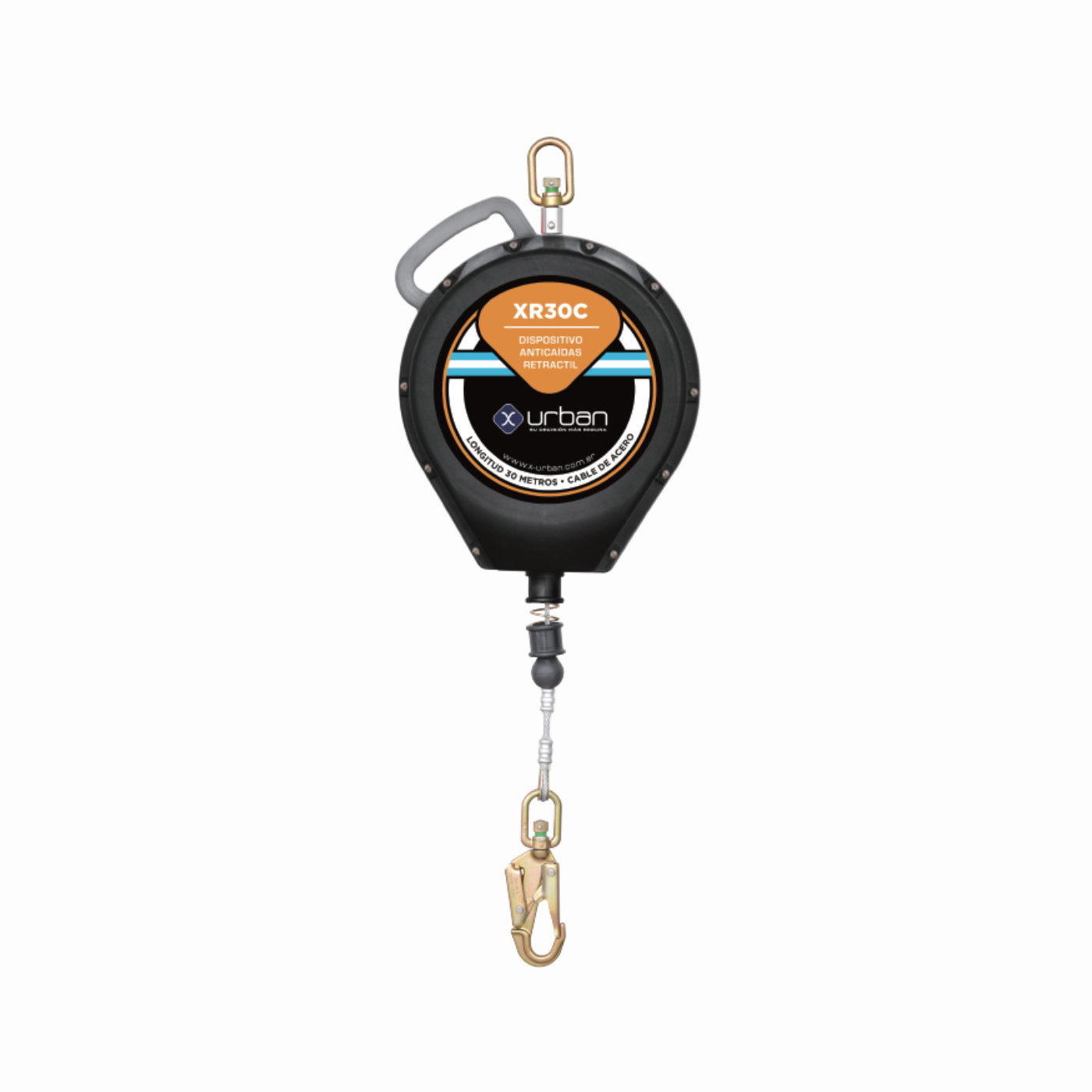 Retráctil anticaídas XR30C X-Urban con cable de acero de 30 m, carcasa de polímero de alta resistencia y sistema de bloqueo inercial. Ideal para trabajos en altura en entornos industriales exigentes.
