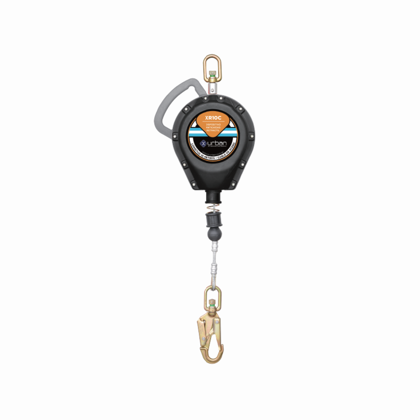 Retráctil anticaídas XR10C X-Urban con cable de acero de 10 m, carcasa de polímero de alta resistencia, sistema con testigo de caída y diseño liviano. Ideal para trabajos en altura en industrias exigentes.